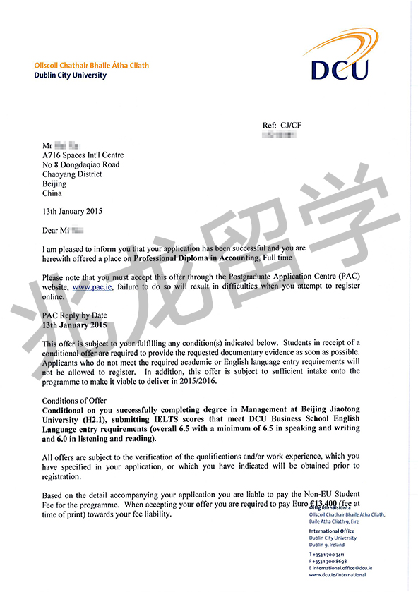 经过兆龙留学爱尔兰留学签证网老师的努力,成功为徐同学申请到爱尔兰都柏林城市大学录取OFFER,以下是他的offer分享,在此祝他留学之路一切顺利!