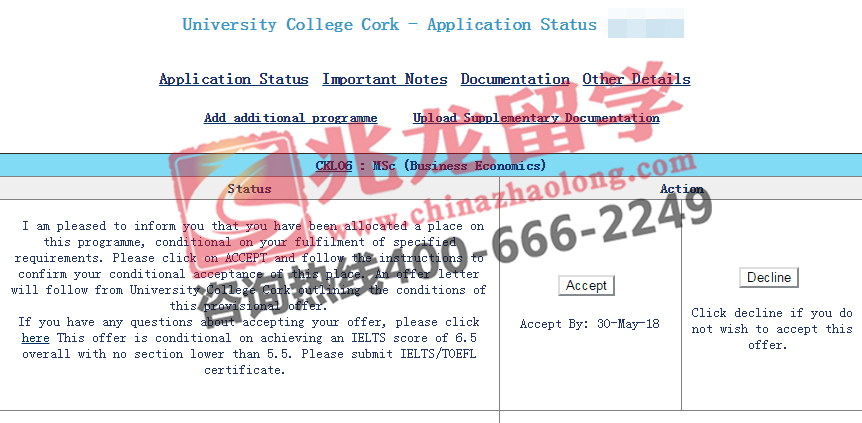经过兆龙留学-爱尔兰留学签证网老师的努力,成功为杜同学申请到爱尔兰科克大学商务经济专业硕士offer,以下是学生offer分享,在此祝她留学之路一切顺利!更多爱尔兰留学申请及爱尔兰签证问题请拨打咨询热线400-666-2249。