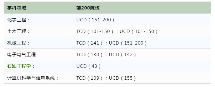 爱尔兰大学QS学科排名