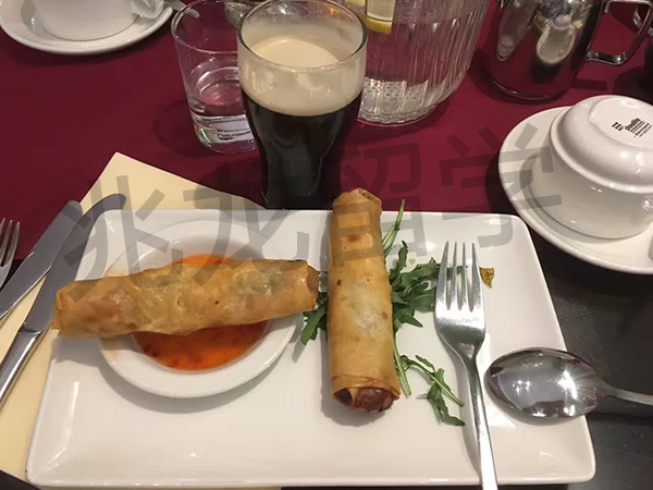 承载记录了爱尔兰人近300年民族情感与文化的Guinness 黑啤,口味醇厚,香浓如饴,窖藏数年,打开尘封,恰到好处的一小杯,配以酥脆金黄的中国春卷,人间美味不过如此。