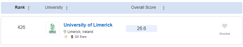 UL在2024QS世界大学综合排名中表现优异,以世界排名426位跻身世界500强名校。