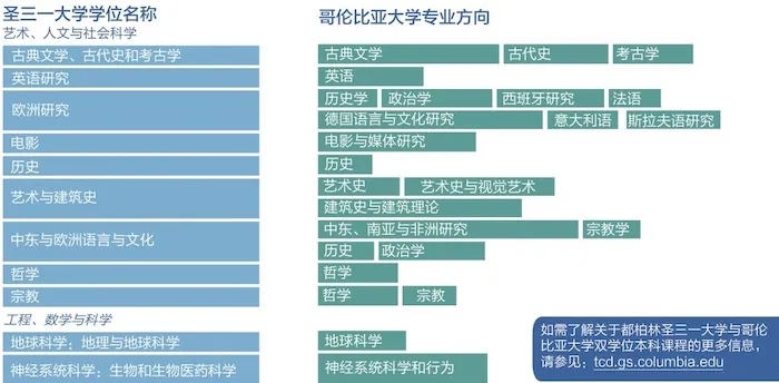 仅4年时间,该课程毕业生将分别获得都柏林圣三一大学和哥伦比亚大学学位。