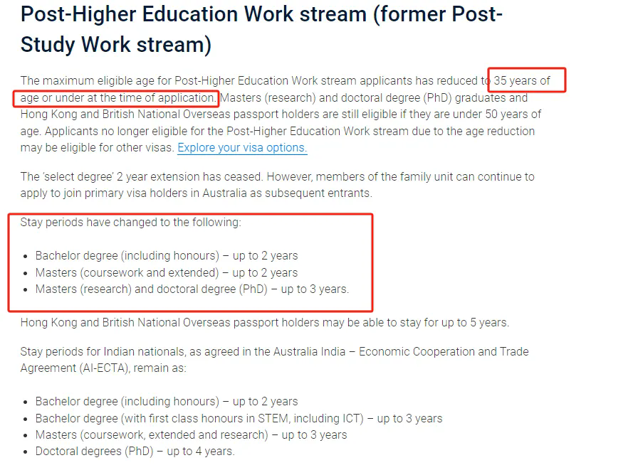 在最新的政策调整中,485毕业生签证的申请年龄门槛有了显著的变化。原先设定的50岁上限已被大幅降低到35岁。然而,这一规定对于香港护照及BNO护照持有者并不适用,他们依然可以在50岁的年龄限制下申请该签证,并享受长达5年的签证时长。