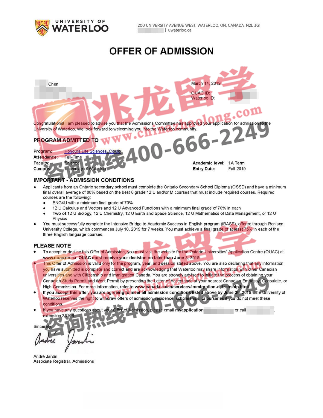 经过兆龙留学加拿大部老师的努力,成功为陈同学申请到加拿大滑铁卢大学生命科学本科offer,以下是学生的offer分享,在此祝他留学之路一切顺利!更多加拿大留学及签证问题请拨打兆龙留学咨询热线400-666-2249!