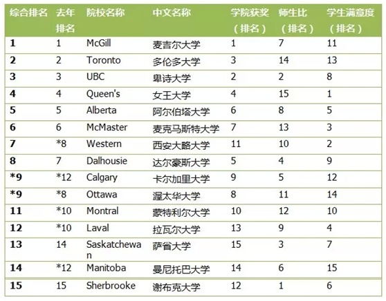 医博类排名今年变化不大,前六名与去年是同一顺序,分别是麦吉尔大学、多伦多大学、英属哥伦比亚大学、皇后大学、阿尔伯塔大学以及麦克马斯特大学。加拿大拥有医学院的15间大学具体排名如下: