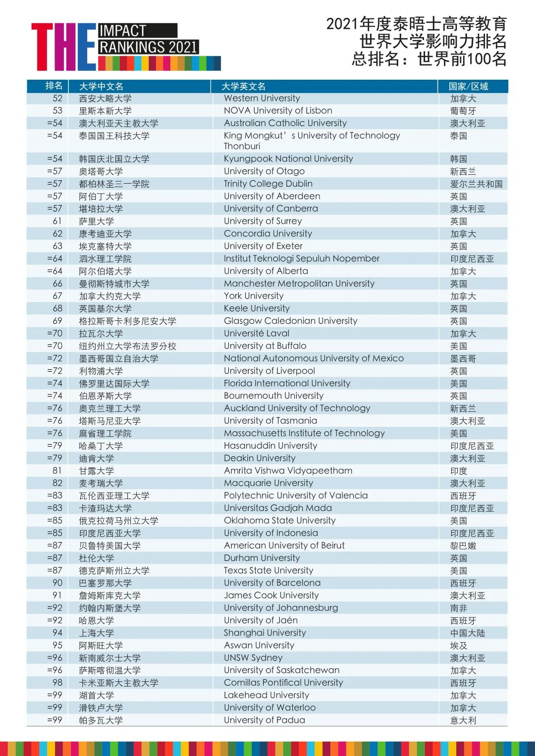 2021年4月21日晚7点,泰晤士高等教育(THE) 发布了2021年度世界大学影响力排名。