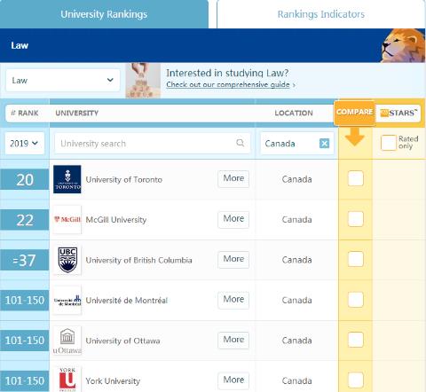2019年QS法学专业全球排名——加拿大篇