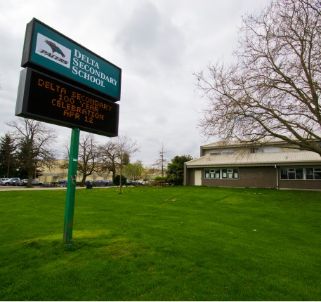 于2015年进行重新整修的Delta中学,位于宁静的Ladner社区,是学区内最大、最新的学校。Delta中学设有大规模剧场、完备的厨艺课程及设备、5间计算机教室、3个体育馆、一间健身房、5座户外网球场与篮球场、一座两层楼高的图书馆、两间音乐教室、一间照片冲洗暗房、以及多处占地宽阔的体育场和活动场地。学校为学生开设了多种有趣的课程,例如12年级的犯罪学、法律学、以及企业精神。