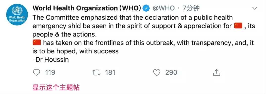 她并表示,世卫的决定“并不出人意料”。1月31日,中国的新冠肺炎疫情已构成国际公共卫生突发事件。