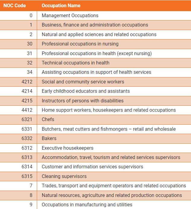 候选人只有在获得符合条件的职业的工作机会后才能申请 RNIP 。在当前期间,以下被确定为符合条件的职业: