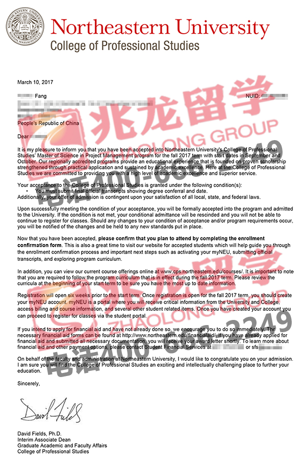 春风送暖,喜讯连连,北京兆龙留学申请全面开花:GPA3.25,托福91,GRE310,恭喜北京兆龙留学帮F同学获得全美排名39东北大学!