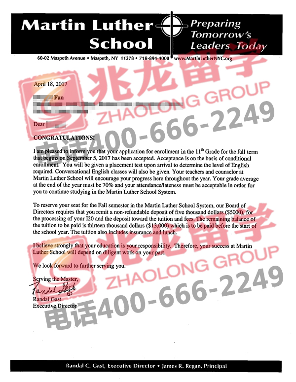经过兆龙留学美国部老师的努力,成功为范同学申请到美国马丁路德中学11年级录取通知书,以下是他的offer分享,在此祝他留学之路一切顺利!更多美国大学申请及美国签证问题请拨打咨询热线400-666-2249!