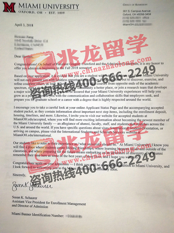 经过兆龙留学美国部老师的努力,成功为姜同学申请到美国迈阿密大学牛津分校本科计算机专业录取通知书,以下是他的offer分享,在此祝他留学之路一切顺利!更多美国留学申请信息请拨打咨询热线400-666-2249。