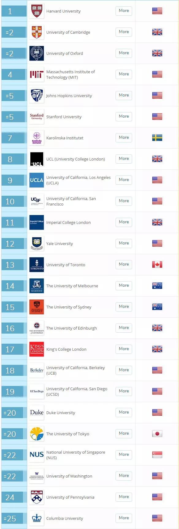 学术声誉方面哈佛100分第1,剑桥牛津紧随其后。雇主声誉方面剑桥牛津领先。今年约翰霍普金斯和斯坦福并列第5,可喜可贺。