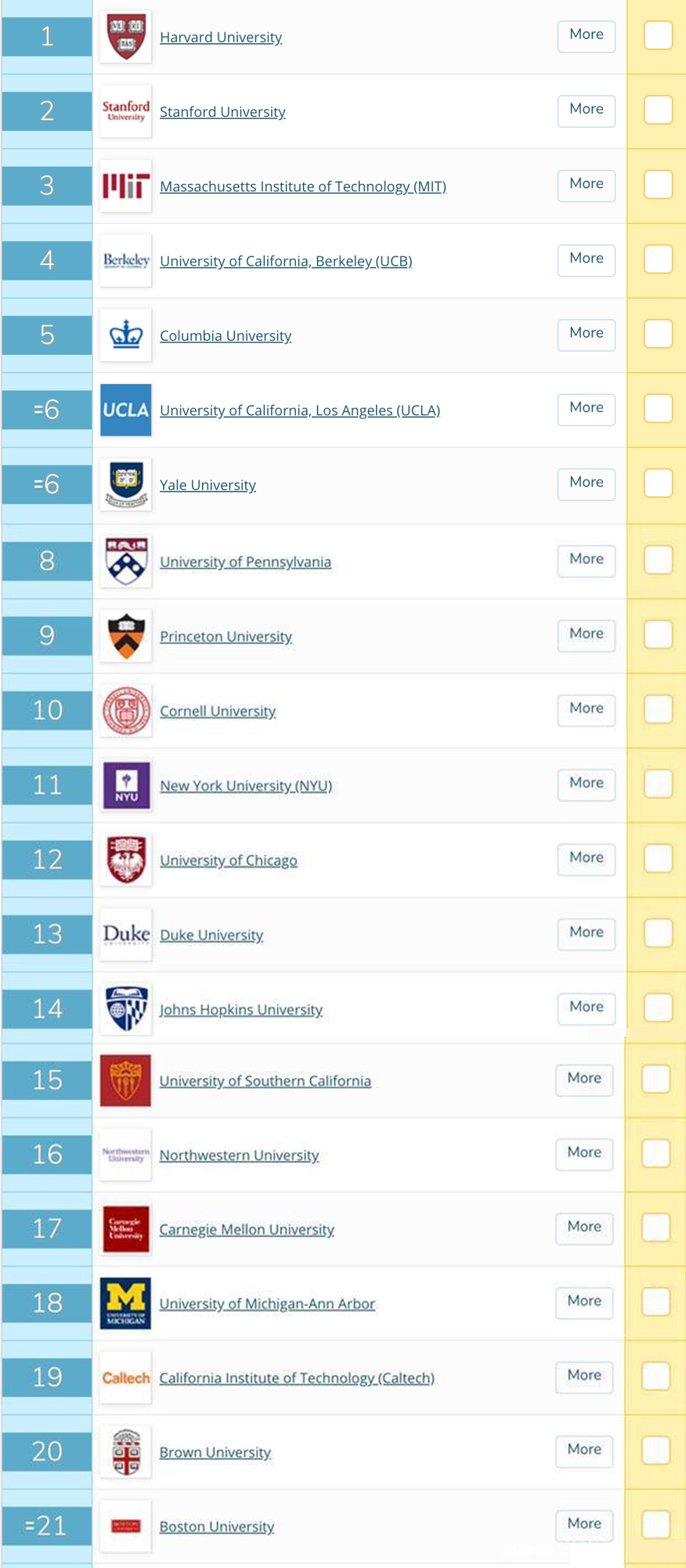 长话短说,小伙伴们赶快跟着小编来看看Top100的院校都有哪些吧!