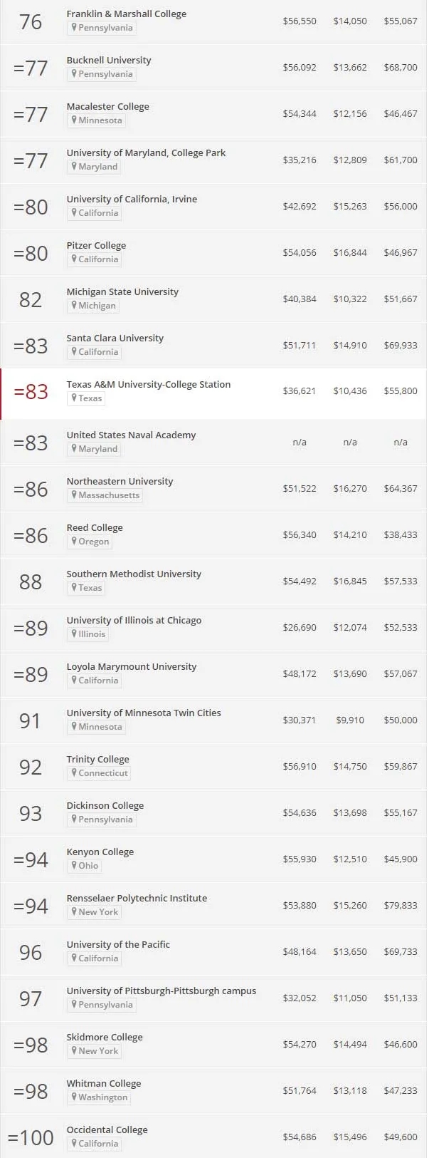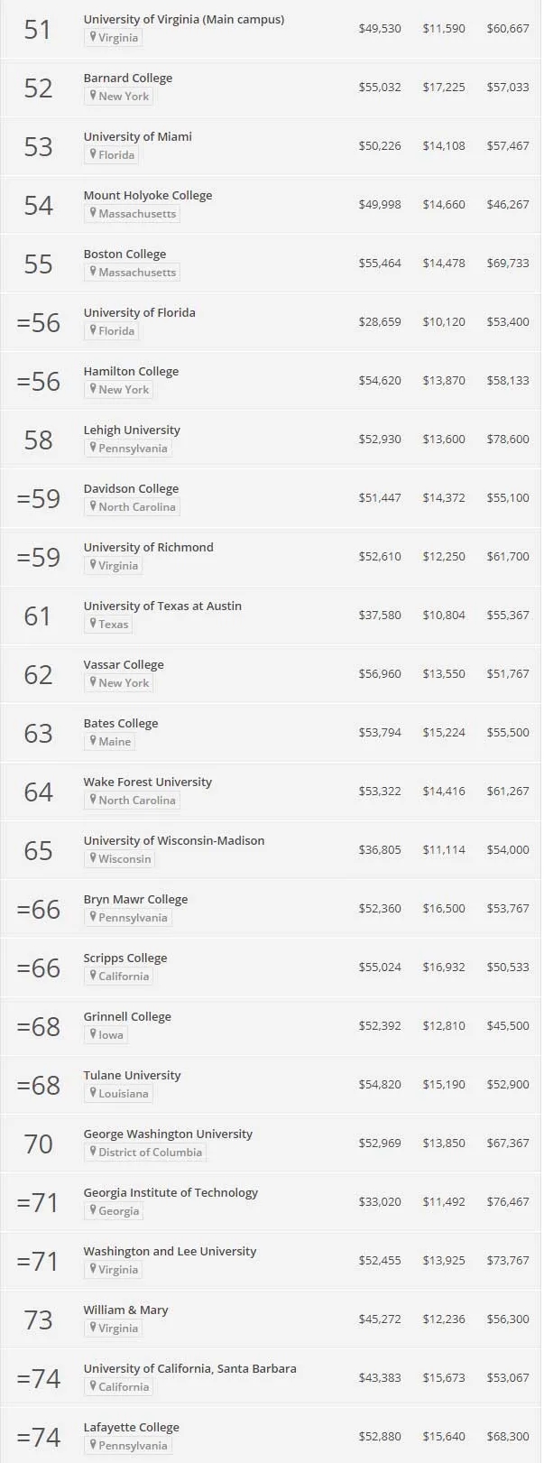 榜单中排名靠前学校的毕业生,一般都对自己接受的教育感到满意,毕业也找到了薪水较高的工作,在偿还学生贷款方面起到很大作用。