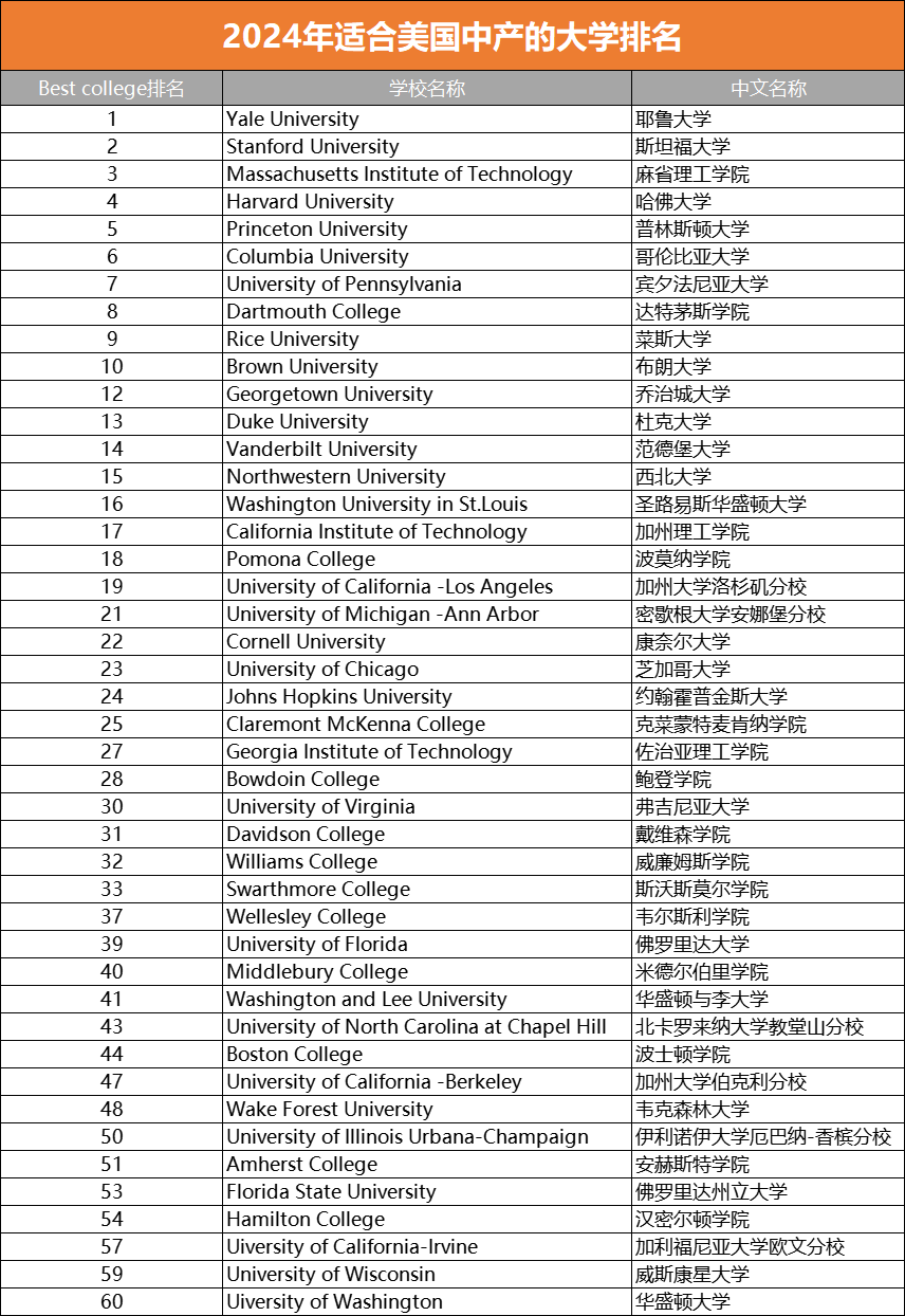 私立精英大学和文理学院对中产家庭有助学金&奖学金的扶持和照顾,因此它们占据着榜单绝大部分席位。