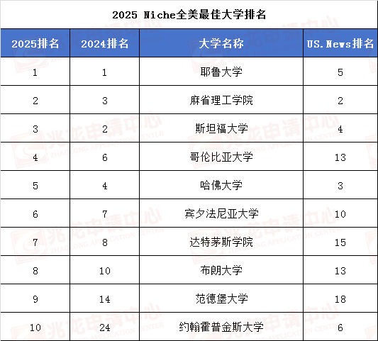 近日,素有美国院校版“大众点评”之称的Niche发布了2025全美最佳大学排名!该排名是除了 QS世界大学排名、U.S.News世界大学排名、泰晤士高等教育世界大学排名、软科世界大学学术排名外,另一个有参考价值的排名榜单!接下来,就跟兆龙留学小编一起来看看吧~