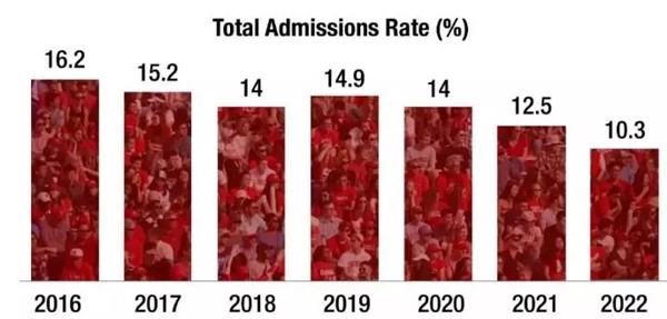 就在今天,美国常春藤联盟相继公布了2022届的申请和录取数据(除了达特茅斯学院,不过能预估出来),哈佛以4.59%的录取率荣登“最低”榜首,多所美国名校本科录取率创下新低。一边是申请人数不断攀升,一边却是申请难度加大,录取率屡屡下降,某校还很过分的降低录取人数!