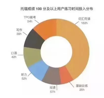 从数据说我们可以观察到,高分考生备考时间总计约为18天431小时。其中词汇背诵是大头,花费162小时,占全部时间的37.6%;基础训练为25小时,占5.8%;阅读为57小时,占13.2%;听力为52小时,占12.1%;口语为42小时,占9.7%;写作为39小时,占9.1%;模考为54小时,占12.5% 。因此,合理分配复习时间至关重要。