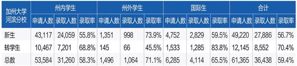 UCR的申请人数比去年增加了395人,其中州内学生申请人数小幅下降,国际生的申请人数增长了1098人;国际生的录取比例有所增加,新生人数为2829人。