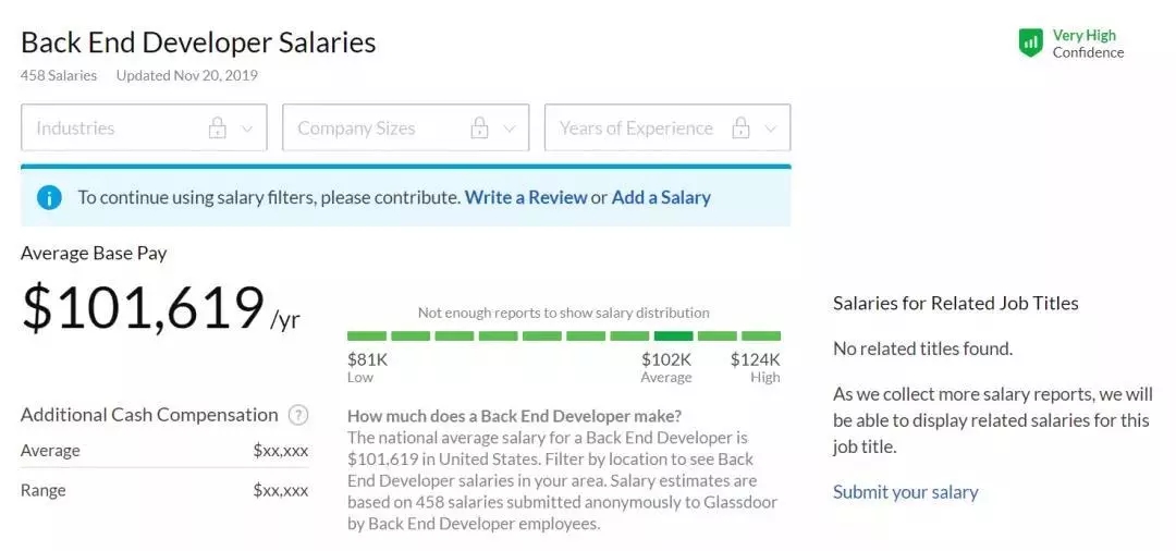 据glassdoor调查,平均工资为:$94,442,属于高薪行业。