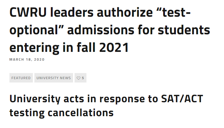 CWRU在其 The Daily第一段就指出:这一政策就是大学针对目前由于疫情原因,而导致大范围考试取消的情况而制定的。