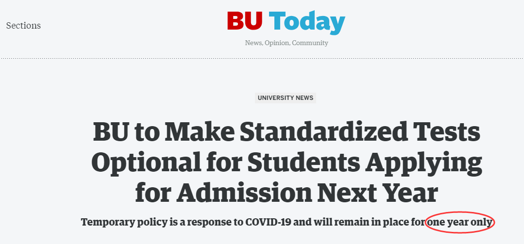 波士顿大学3月25日宣布,明年申请季(Fall 2021 / Spring 2022),将采用 Test Optional政策,该项措施主要是为应对肺炎疫情做出的改变,有效期一年.