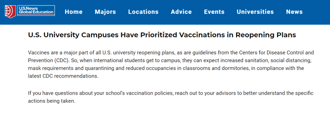 留学生也不用担心,U.S.News Global Education的主席Tom Dretler在发文中表示:相比于去年的“手忙脚乱”,美国大学今年为学生返校也是万事俱备只等你来了,一系列的防疫政策都已经安排妥当了。