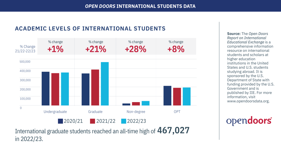 美国的国际学生人数自疫情下降后,今年是连续第二年回升!