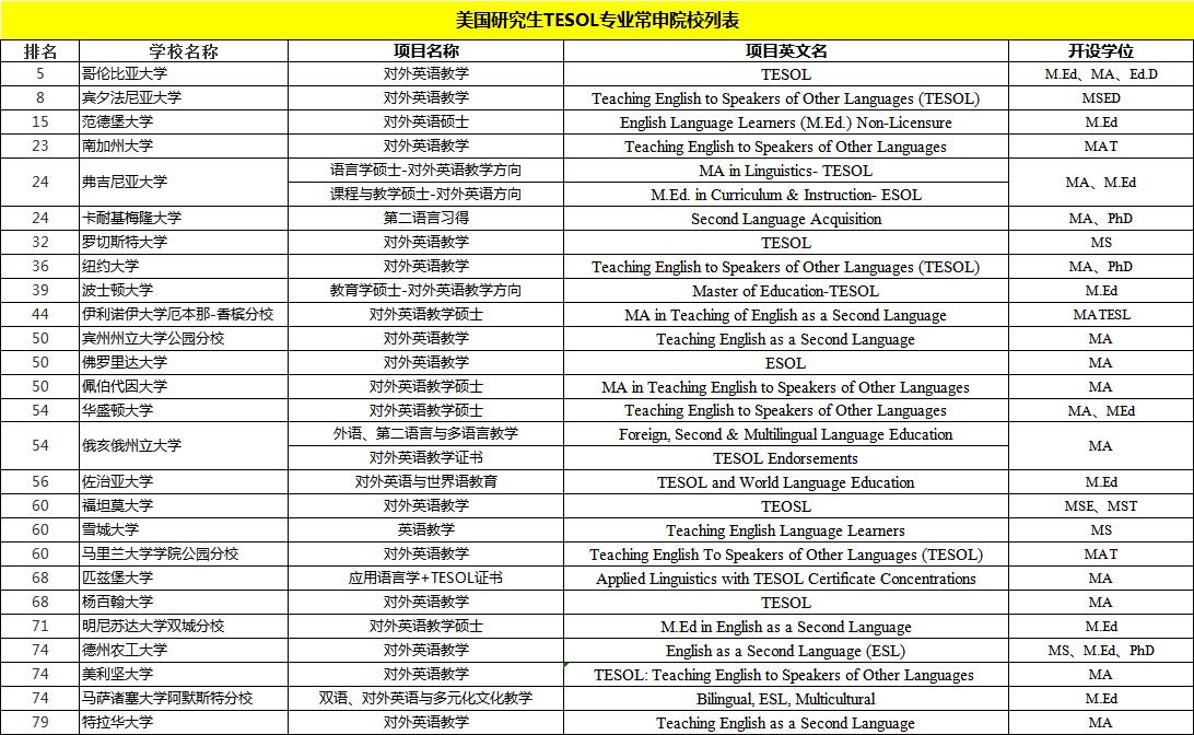 美国TESOL专业背景要求低,不管是从事过教学方面的工作,还是选修过教育学、心理学等课程都可以申请该专业,因此很多美国留学的学生都选择TESOL专业。