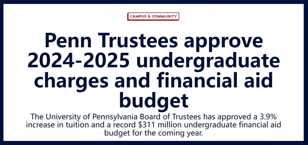 本科生学费上涨3.9%,总费用预计达到87,860美元。同时提供了高达3.11亿美元的本科经济援助预算,相比去年增加了4.5%,为历史最高。