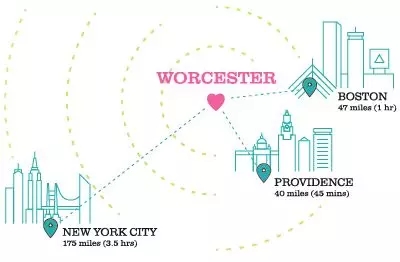 由于位于马萨诸塞州的中心位置,伍斯特市先天具有地理上的极大优势,被诸多大城市包围,意味着伍斯特市距离全球顶尖的媒体、金融、医疗及保险领域企业仅数十分钟之遥。这对克拉克大学学生实习和就业创造了非常便利的条件。