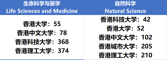 在自然科学领域,香港科技大学仍然是独占港校鳌头,排名42。香港大学紧随其后,排名52。