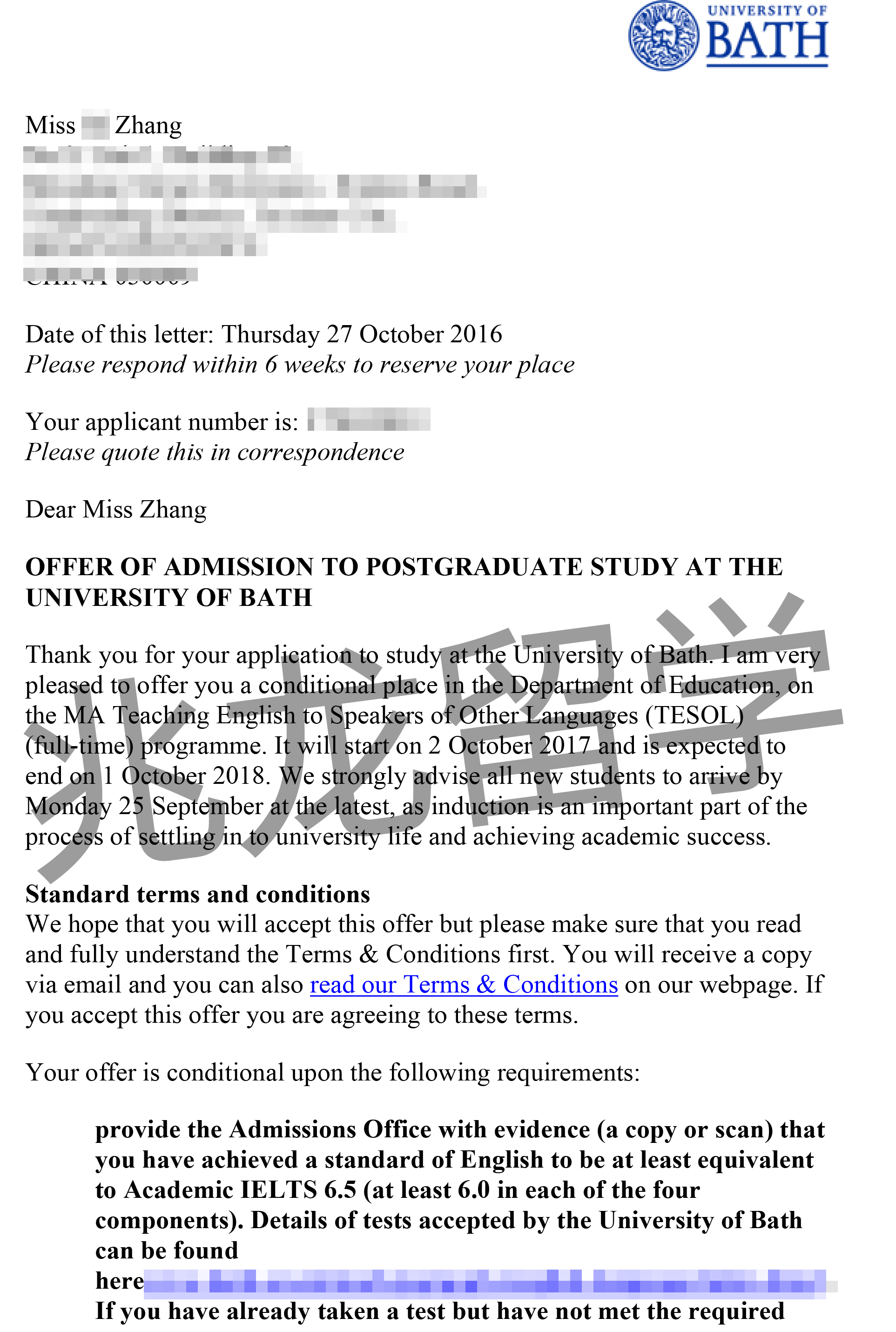 经过兆龙留学网老师的努力,成功为张同学喜获巴斯大学的TESOL专业通知书,以下是他的offer分享,在此祝他留学之路一切顺利!
