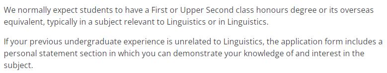 申请要求:一等或二等一学士学位或同等学历,本科专业背景:语言学或语言学相关专业。