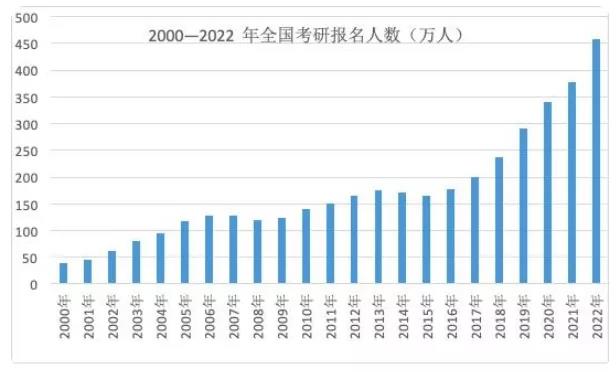 今年,全国考研报考人数为457万,比2021年增长80万。自2016年起,我国硕士研究生报考人数在高位上保持高增长趋势。2015-2022年,7年平均增长15.8%。