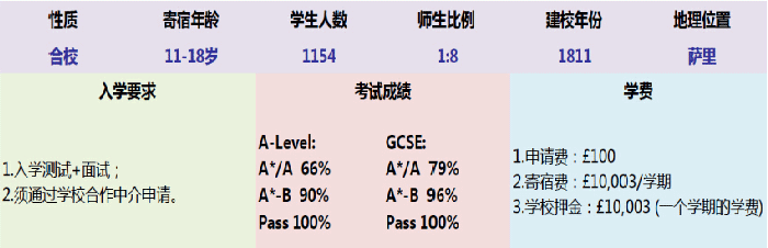 卡特汉姆学校建立于1811年,招收3-18岁的学生,位于英国东南部的萨里郡。该校是英格兰东南部地区最好的男女同校制的学校,教学质量高并致力于为学生提供愉悦、友好和备受关怀的环境。