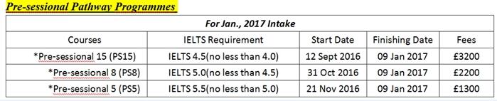 Postgraduate Course 硕士课程(雅思总分6.0,写作6.0,其他单项不低于5.5) :
