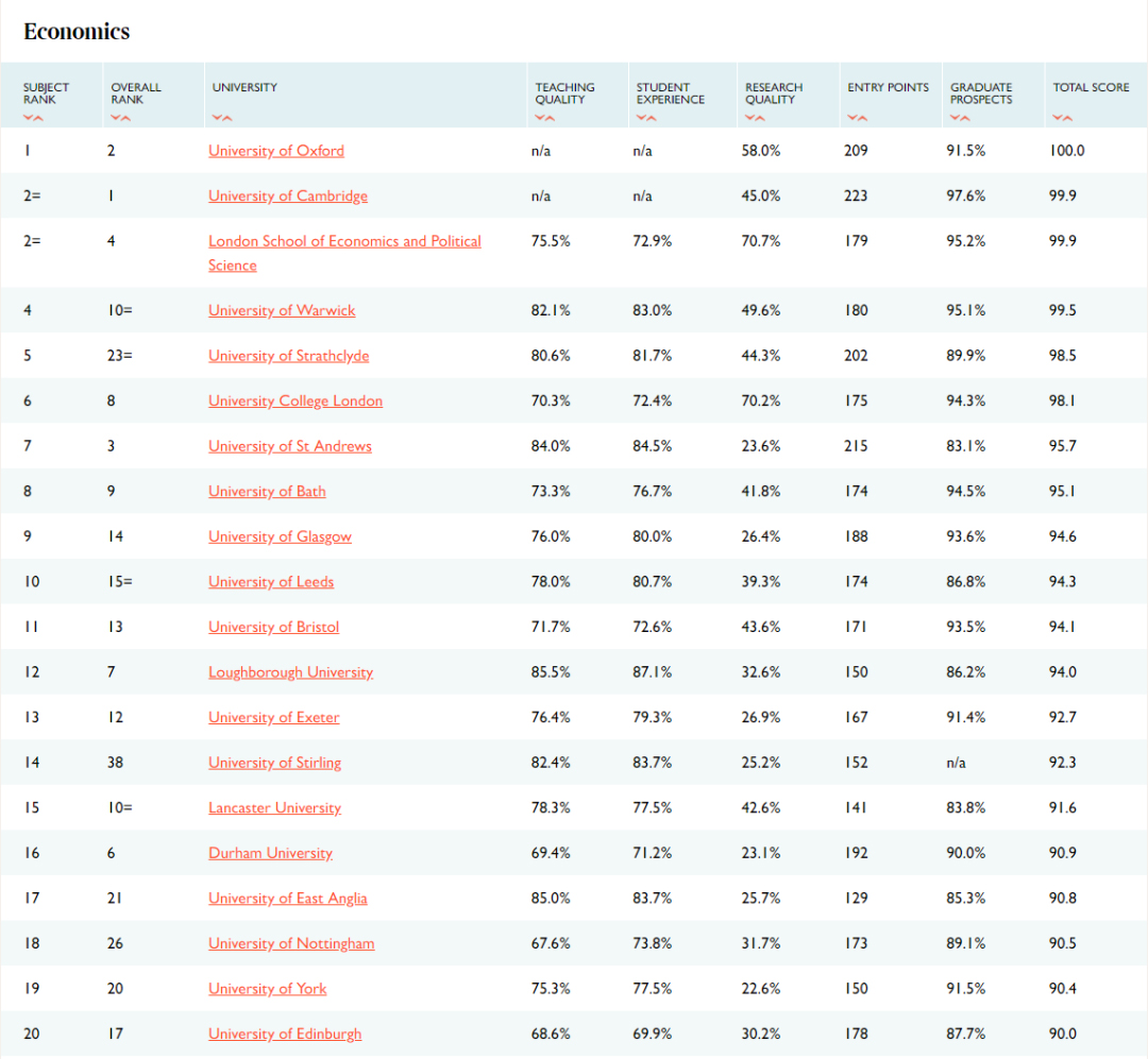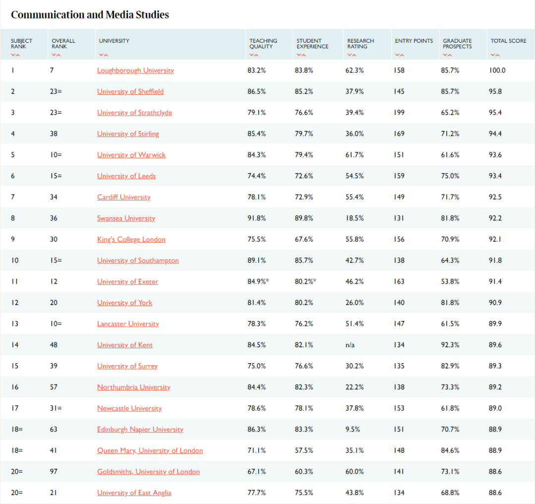 TIMES也是历史最悠久、英国最权威、数据最完备的大学排名。不仅对英国高等院校进行了综合排名,同时还有67个学科的单科排名,深受大多数中国留学生信任。