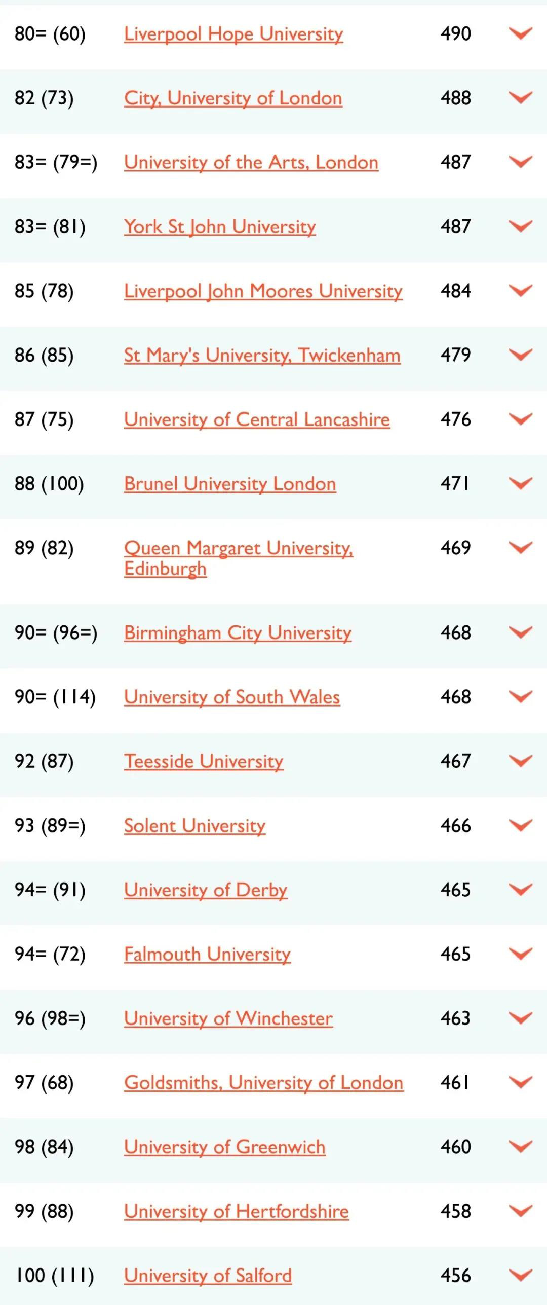 5、有升自然也有跌!那些较为出名的跌幅较明显的大学有:伯明翰大学(14→19)、诺丁汉大学(21→26),拉夫堡大学、兰卡斯特大学、利兹大学也各下降2位;