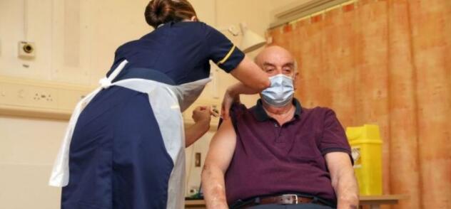 今年82岁的透析病人布莱恩·品克(Brian Pinker)成为了首位接种牛津-阿斯利康新冠疫苗的人。