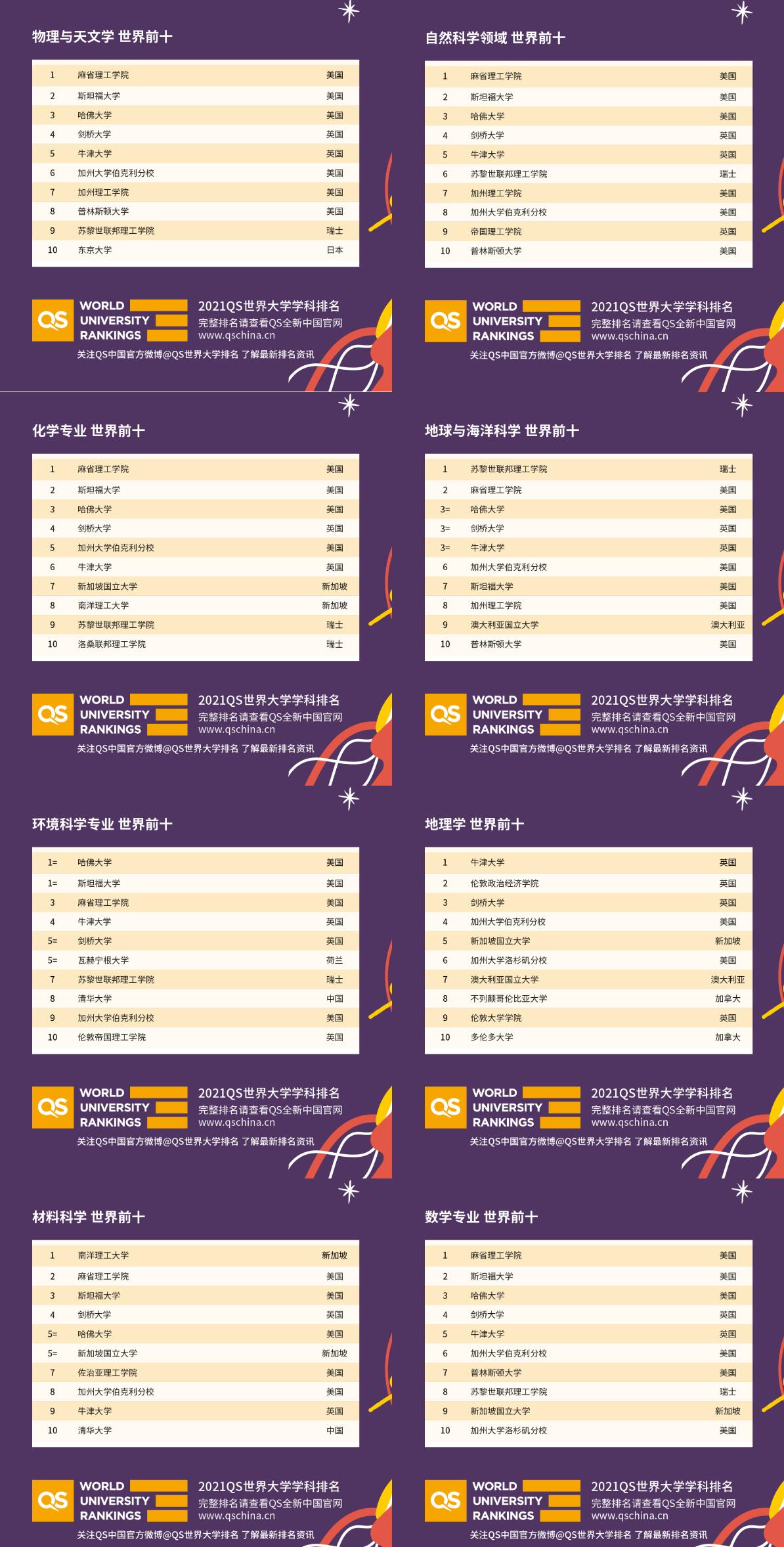 本次QS排名涵盖51个学科,分为五大学科领域: