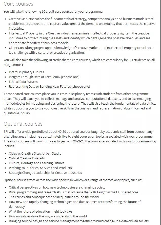 不过除此之外,还发现了一个全新的由EFI提供的专业——MSc Creative Industries 创意产业。
