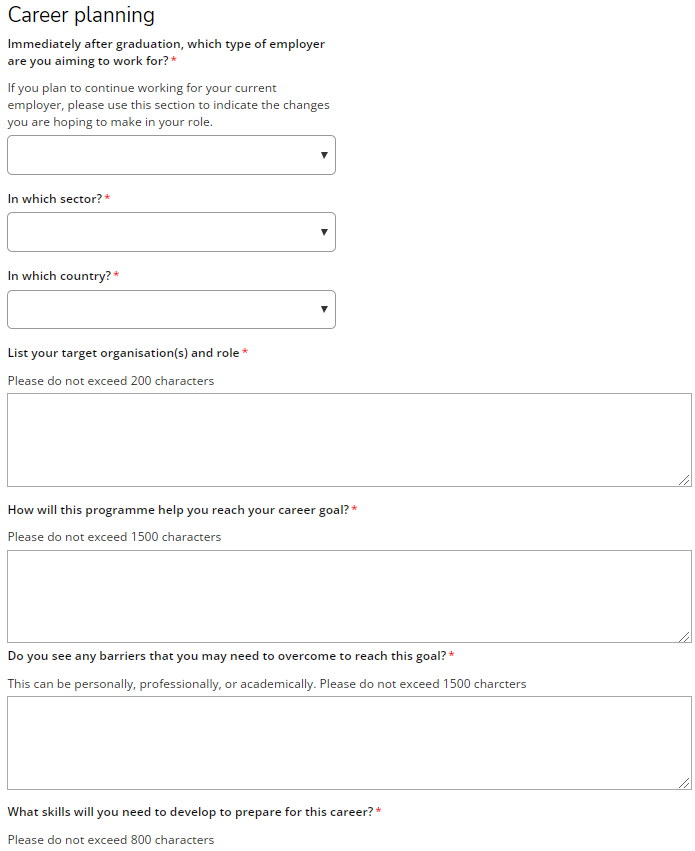 帝国理工商学院的申请,其实非常看重职业规划部分,在网申系统中,对这部分内容,申请者需要填写的信息很多。