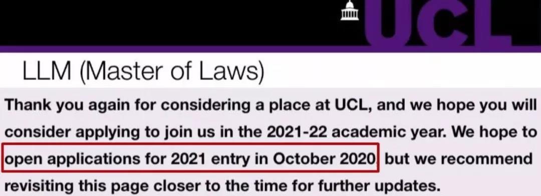 伦敦大学学院2021年硕士申请开放通道在10月份开启。