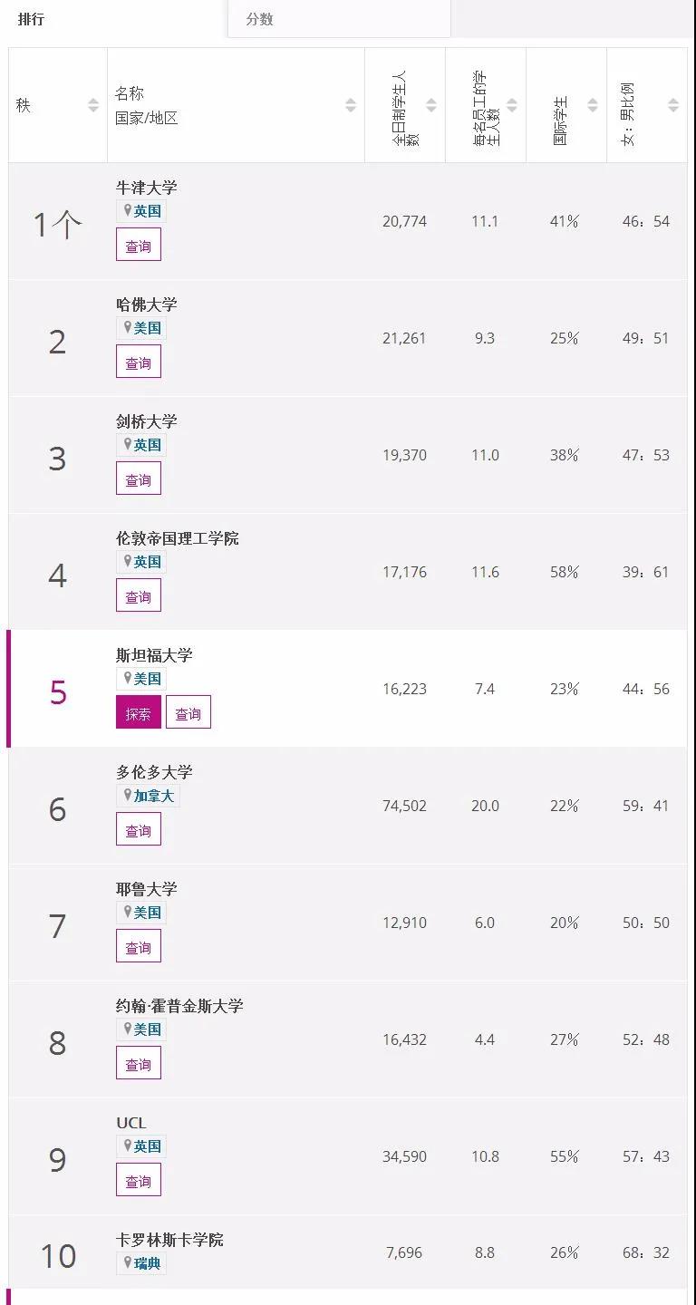 斯坦福大学连续第四年名列榜首,而加利福尼亚大学,伯克利大学和伦敦国王学院则是榜单上的新人,分别首次亮相第四和第十一位。与此同时,不列颠哥伦比亚大学掉下来的前10名,下降三个地联合13个。爱丁堡大学,卡内基梅隆大学和鲁汶大学三所大学跻身前20名。