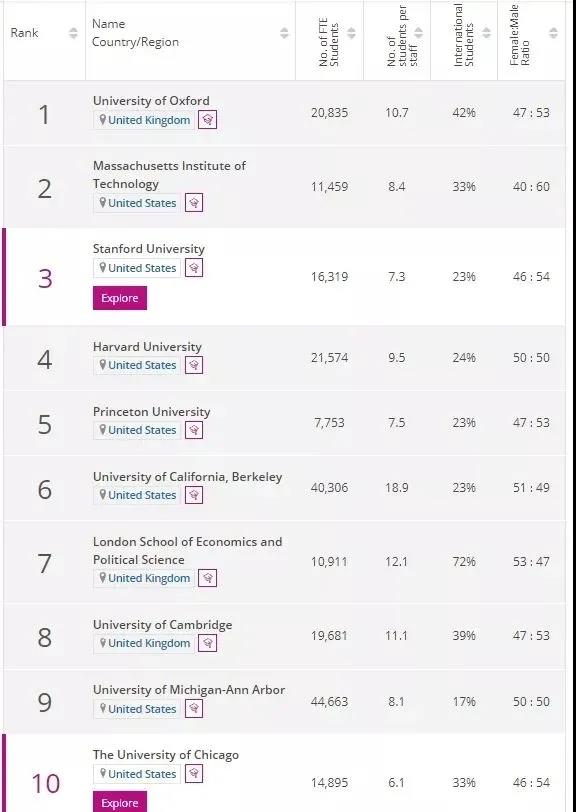 这个排名无疑为那些准备留学申请的小伙伴们解决了不少问题: