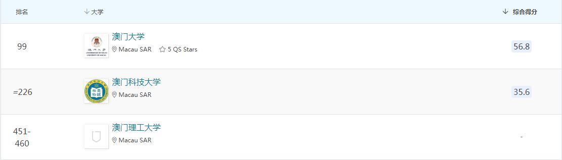 中国澳门院校本次的惊喜也不多,除了澳门理工大学排名大涨之外,另外两所大家常申请的中国澳门院校下滑不少!