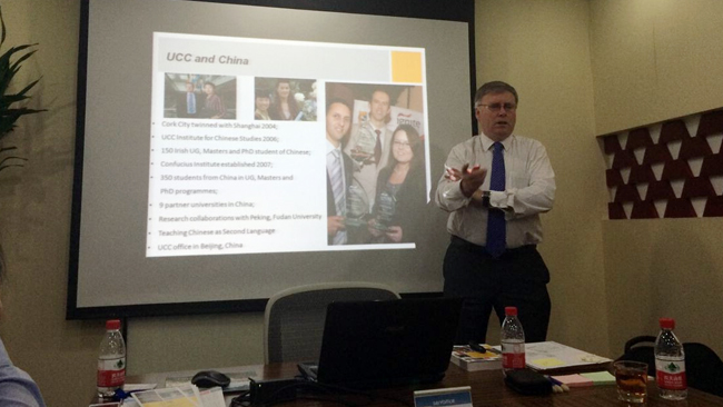 2014年5月21日,兆龙教育市场总监参加爱尔兰国立科克大学交流研讨会,共同商讨2014-2015年度的合作事宜,并与科克大学外事副校长Mr.Trevor Holmes和Dr.Sverre Lidholm 亲切会谈,进一步加强了双方的合作关系。